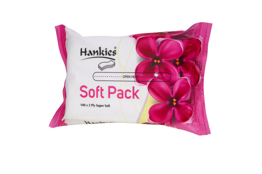 Hankies Soft Pack Tissue - 100 Super Soft 2-Ply Sheets