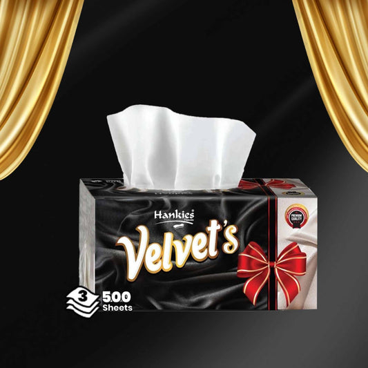 Hankies Velvet’s 3-Ply Tissue Bundle Pack of 2 – 500 Pulls Each | Ultra-Soft Premium Facial Tissues